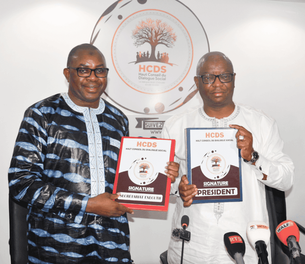 Le Haut Conseil du Dialogue Social du Sénégal (HCDS), présidé par M. Mamadou Lamine DIANTÉ, a accueilli à Dakar la délégation du Conseil National du Dialogue Social de Guinée (CNDS) conduite par son Président, Dr Alia CAMARA, dans le cadre d’une visite de travail et d’amitié du 18 au 24 août 2025. Cette rencontre a été l’occasion de rappeler les liens séculaires entre les deux peuples et de réaffirmer la volonté commune de renforcer la coopération bilatérale. Les deux institutions ont mis en avant l’importance du dialogue social tripartite comme outil de stabilité et de cohésion, tout en partageant leurs expériences sur la représentativité syndicale, l’unification des mouvements sociaux et patronaux, ainsi que la prévention des conflits sociaux. Elles se sont engagées à promouvoir la paix sociale, le travail décent, la valorisation du capital humain, et à développer des programmes conjoints de renforcement de capacités et d’assistance technique. Un accent particulier a été mis sur la nécessité de mettre en place un cadre permanent de concertation pour assurer le suivi et l’évaluation des recommandations issues de cette mission, avec une ouverture à l’ensemble des institutions de la sous-région et du continent africain. Cette dynamique a été matérialisée par la signature d’un protocole d’accord entre le HCDS du Sénégal et le CNDS de Guinée, scellant ainsi une nouvelle étape dans le partenariat stratégique entre les deux pays au service du progrès économique et social.