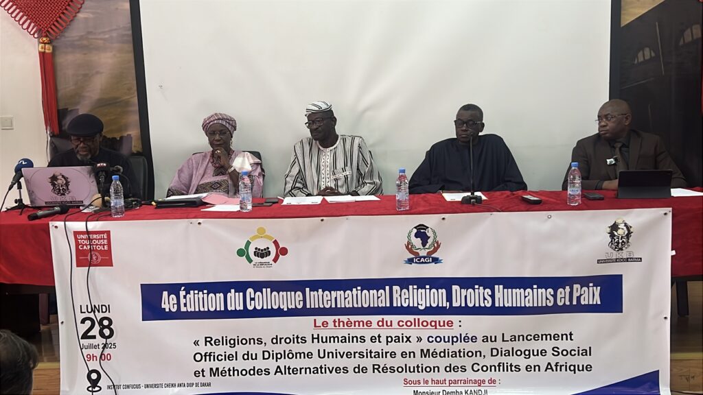 Ce lundi 28 juillet 2025, Monsieur Mamadou Lamine DIANTÉ, Président du Haut Conseil du Dialogue Social, a pris part au Séminaire international « Religions, Droits de l’Homme et Paix » à l’Université Cheikh Anta Diop.
